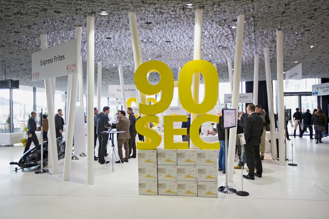 Am Finale des prestigeträchtigsten Schweizer Kochwettbewerbs «Goldener Koch» durfte McKinivan für die Veranstalterin KADI die neuen Express Frites präsentieren. Grosse 3D-Schriftelemente unterstrichen die einzigartig kurze Frittierzeit der Produktinnovation und lockten zusammen mit einem Rennbob die Besucher zur Degustation ein.