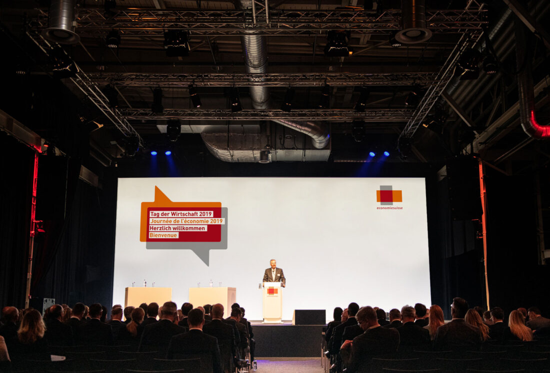 Rund 500 Personen aus Wirtschaft und Politik versammelten sich zum Tag der Wirtschaft 2019 im Stage One in Zürich. Ein interessantes Impulsreferat, spannende Podiumsdiskussionen und die Grussbotschaft von Bundesrat Ueli Maurer standen ganz im Zeichen der Anlassthematik «Die Schweiz muss Weltspitze bleiben!». Für diesen Event haben wir die Rauminszenierung konzipiert, digitale Inhalte produziert und waren vor Ort für die Ablaufregie verantwortlich.