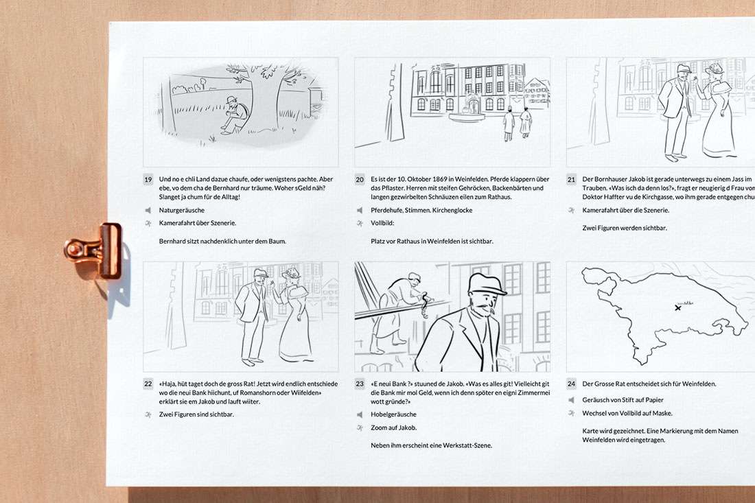 Weiter wurden im Vornherein Illustrationen produziert, um die Geschichte auf der Webseite der Thurgauer Kantonalbank zu präsentieren. Für die Nachkommunikation wurden zudem packende Kurzversionen der Geschichtsanimation erstellt.