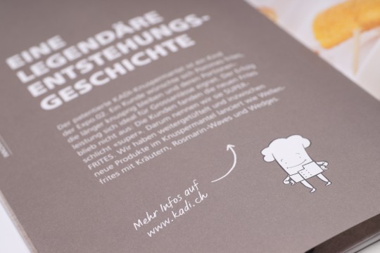 KADI, der innovative Hersteller von Kartoffelprodukten und anderen Tiefkühlspezialistäten präsentiert seine Produktsortimente in einem Sortimentsfolder. McKinivan hat diesen konzeptionell und visuell im Sinne des neuen Corporate Designs überarbeitet, das ebenfalls von McKinivan stammt.